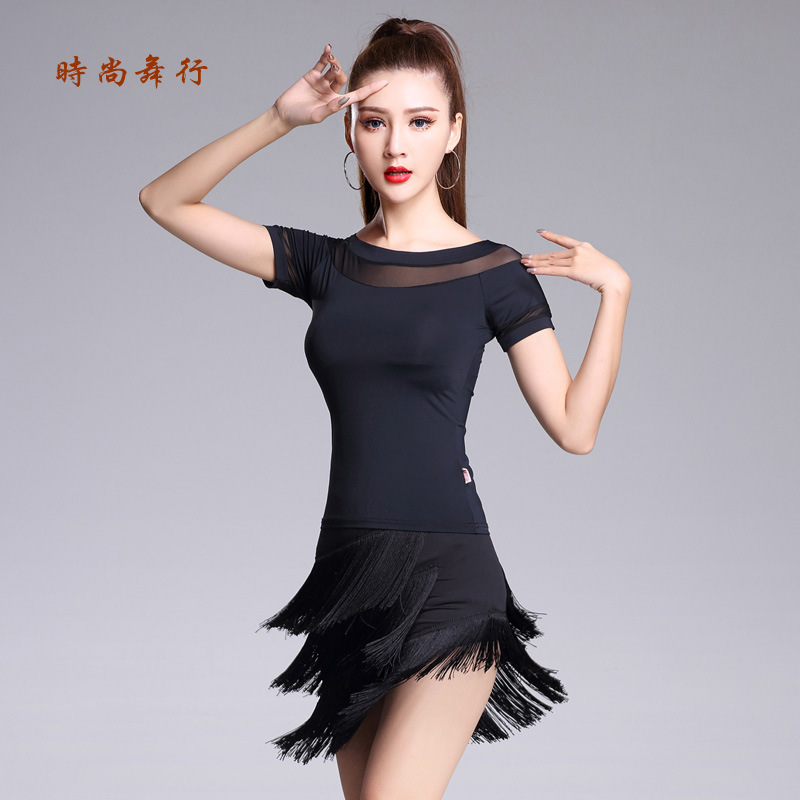Atasan dansa Latin wanita musim panas dewasa tari modern atasan dansa Ballroom lengan pendek pakaian tari seksi pakaian latihan tubuh