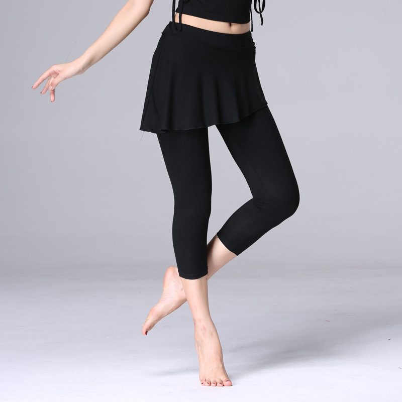 Celana panjang tari tubuh slim-fit pakaian latihan tari Latin celana tari wanita dewasa kulot crop tari hitam