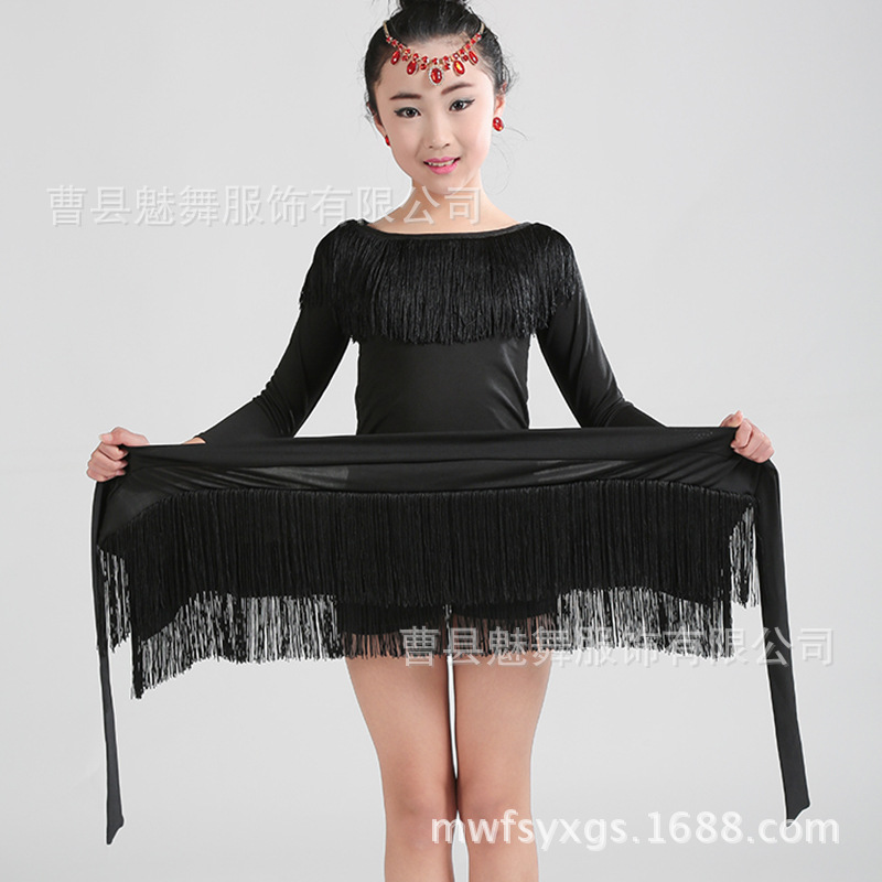 Dancing 69 Pakaian Latihan Tari Latin Kelas Atas Pakaian Pertunjukan Anak Profesional Wanita Rok Rumbai Pakaian Tari Latin Anak Perempuan