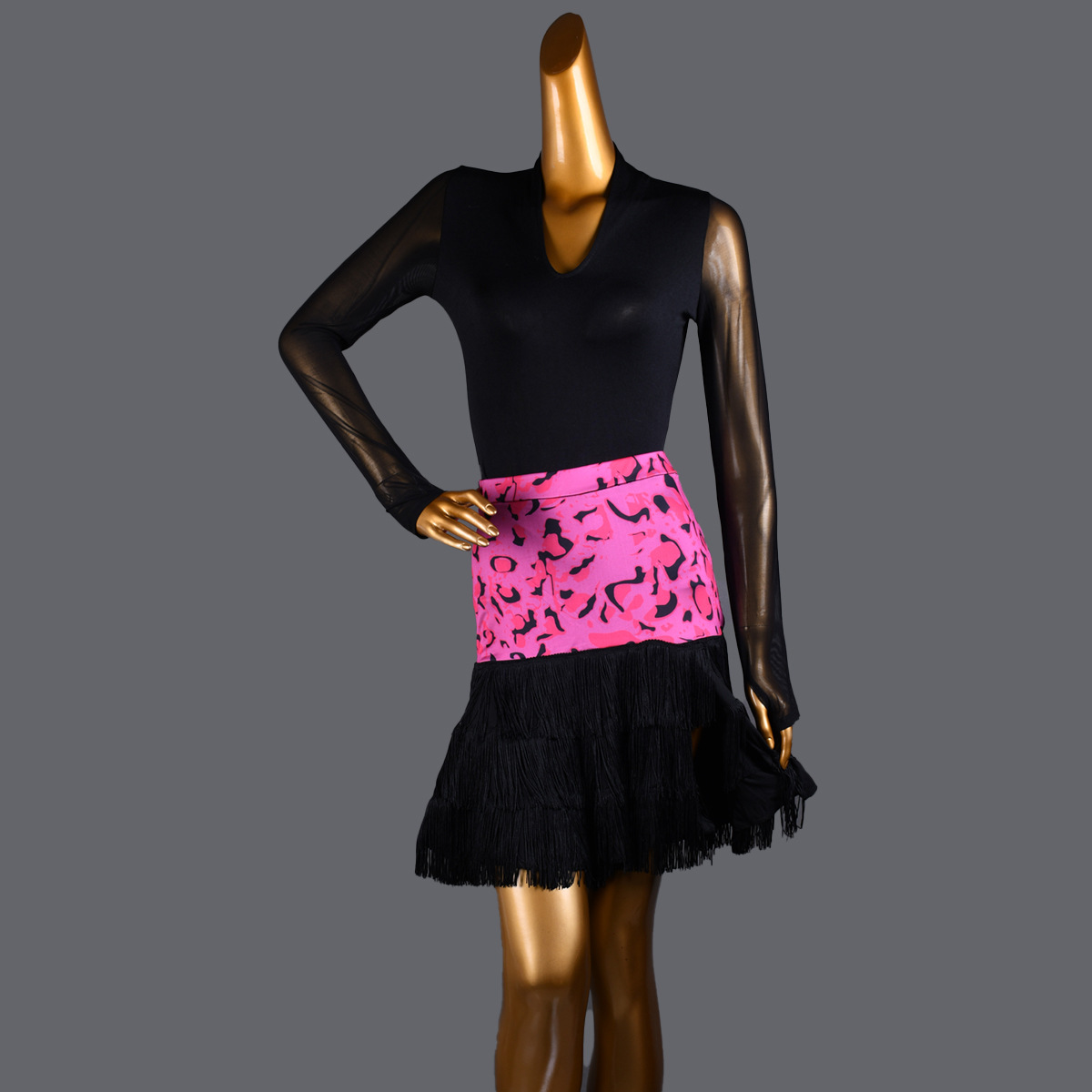 Latin pakaian dansa Rok tidak rata wanita dewasa, rok pinggul lipit motif macan tutul jahitan, rok belahan ekor ikan