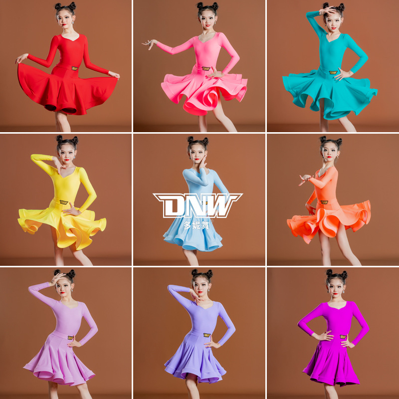 DNW pakaian tari rok besar anak-anak standar Eropa pakaian profesional anak perempuan online merah pakaian kompetisi tari Latin anak perempuan