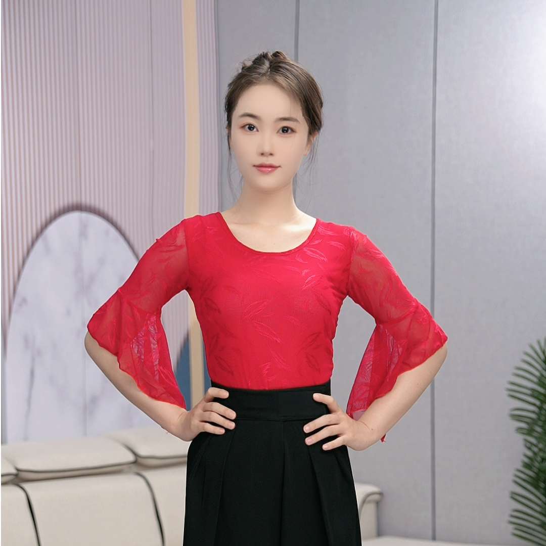 Atasan Tari Persahabatan Lengan Daun Teratai Tari Latin Pakaian Latihan Tari Standar Nasional Tari Modern Tari Model Baru Elegan Modis