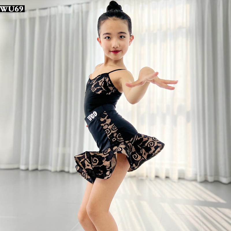 WU69 pakaian latihan dansa Latin anak-anak, pakaian latihan dansa anak-anak, rok pakaian pertunjukan tari Latin anak-anak baru musim panas
