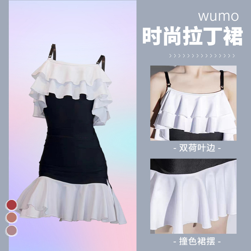 Baju dansa Latin dewasa perempuan, pakaian latihan dansa, Rok dansa Latin, pakaian latihan pertandingan, baju latihan wanita