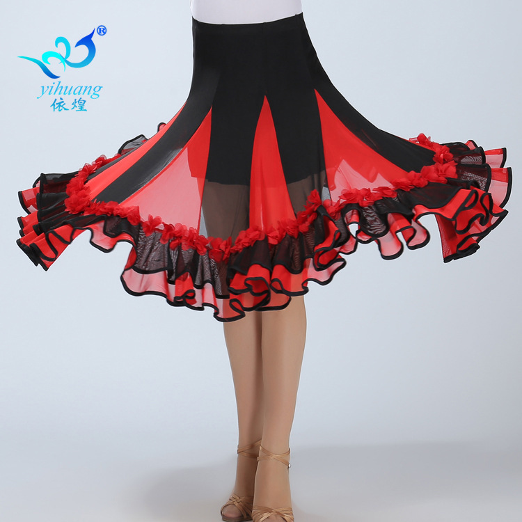 Baju dansa, baju dansa, baju penampilan midi, baju latihan dansa Latin, rok ayunan besar, Rok dansa Perdagangan