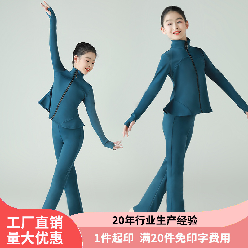 Pakaian olahraga anak perempuan, jaket atasan dansa, pakaian luar, pakaian latihan Latin, jaket dansa China, pakaian dansa rakyat