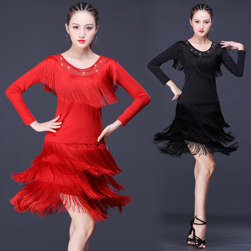 Pakaian dansa Latin wanita, gaun ayun tidak rata, pakaian Pertunjukan ujian seni profesional musim gugur dan musim dingin