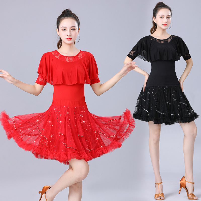 Pakaian dansa Latin wanita dewasa 2019 baru, atasan rok dansa Latin, pakaian latihan menari, atasan lengan pendek