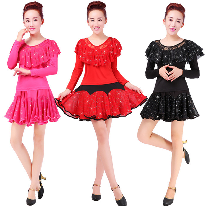 Pakaian dansa persegi, pakaian latihan tari Latin, pakaian penampilan dewasa baru wanita, payet profesional, setelan dansa tiga langkah
