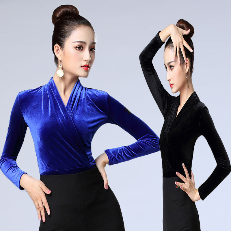 Pakaian dansa persegi atasan modal baru musim semi dan musim panas leher bulat lengan panjang pakaian dansa Latin pakaian latihan dewasa untuk wanita
