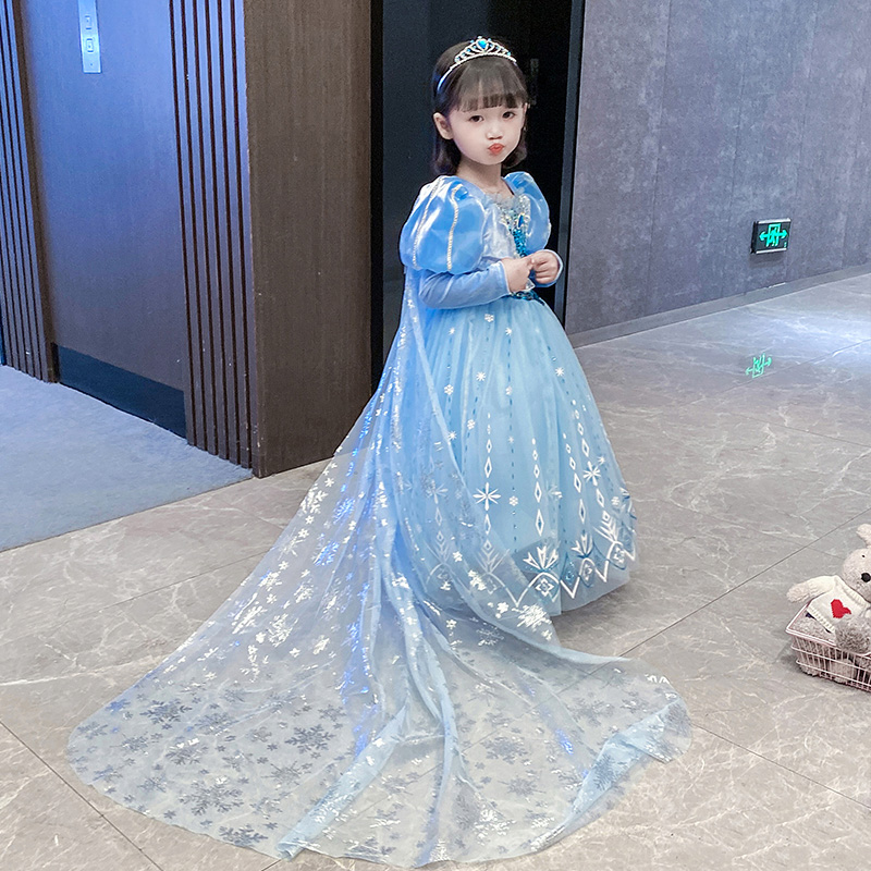 Gaun sweater frozen anak perempuan, Gaun penampilan putri Elsa frozen2 grosir musim gugur dan musim dingin