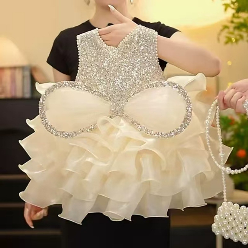 Gaun Anak Perempuan Gaun Pesta Ulang Tahun Gadis Kecil Pernikahan Gadis Bunga Gaun Putri Pertunjukan Piano Host Kelas Atas Anak-anak