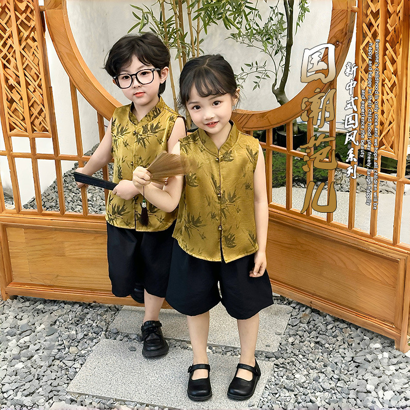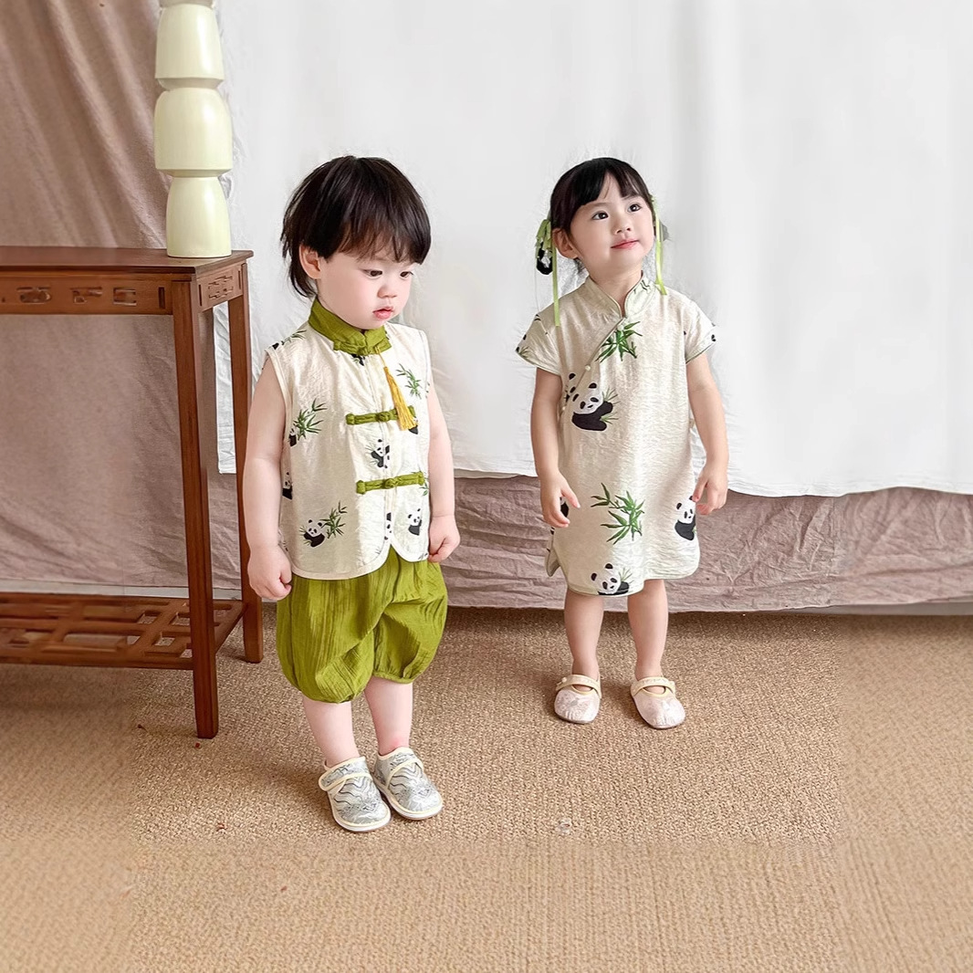 Pakaian Saudara Perempuan Gaya Tiongkok Setelan Musim Panas Anak Laki-laki Pakaian Musim Panas Anak Perempuan Cheongsam Pakaian Pertunjukan Gaya Barat Bayi