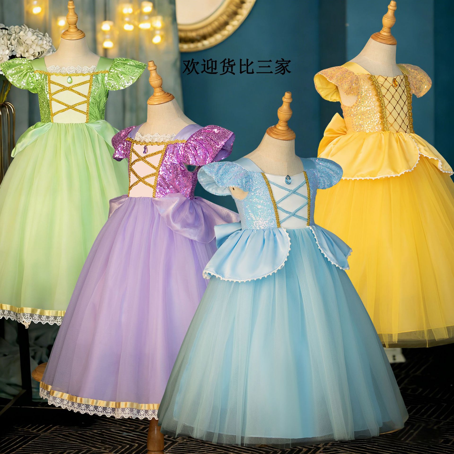 2024 baru Cinderella Rapunzel Belle gaun busur anak perempuan pakaian performa anak-anak
