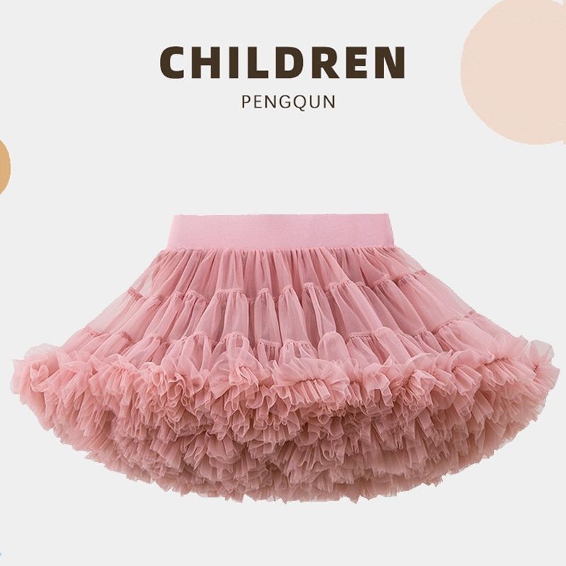 Rok tutu setengah panjang serbaguna gaya Korea untuk anak perempuan, pakaian pertunjukan anak-anak yang modis untuk 1 Juni, rok kue anak perempuan dengan keliman lebar.
