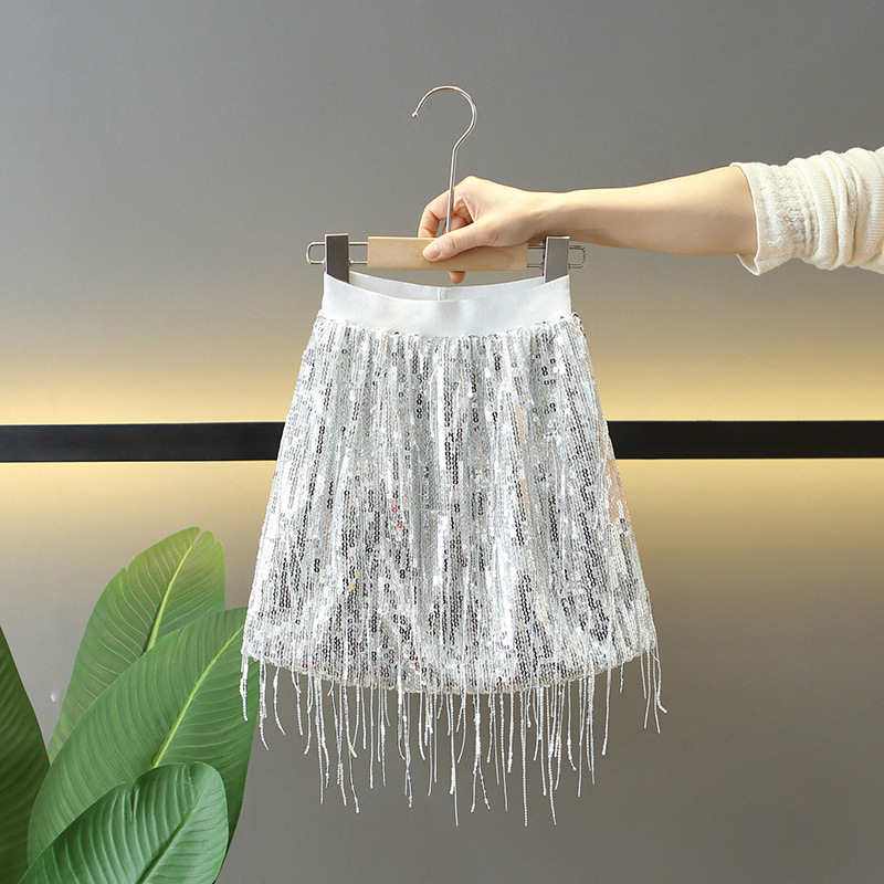 Rok Setengah Badan Anak Perempuan Musim Panas 2025 Pakaian Anak Rok Pertunjukan Payet Model Baru Rok Putri Bersinar Anak Rok Gadis Kecil