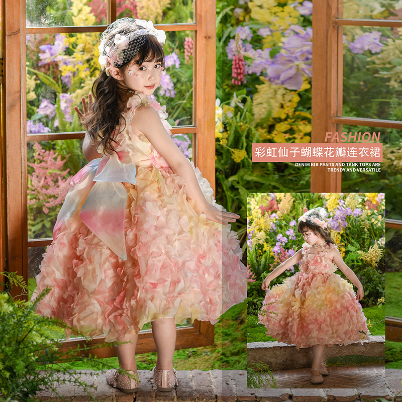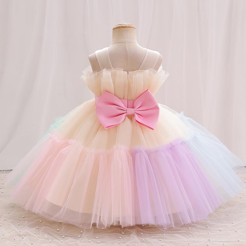 Gaun putri jala pelangi gaun anak-anak gaun anak-anak perempuan baru 2024 pakaian pertunjukan taman kanak-kanak grosir