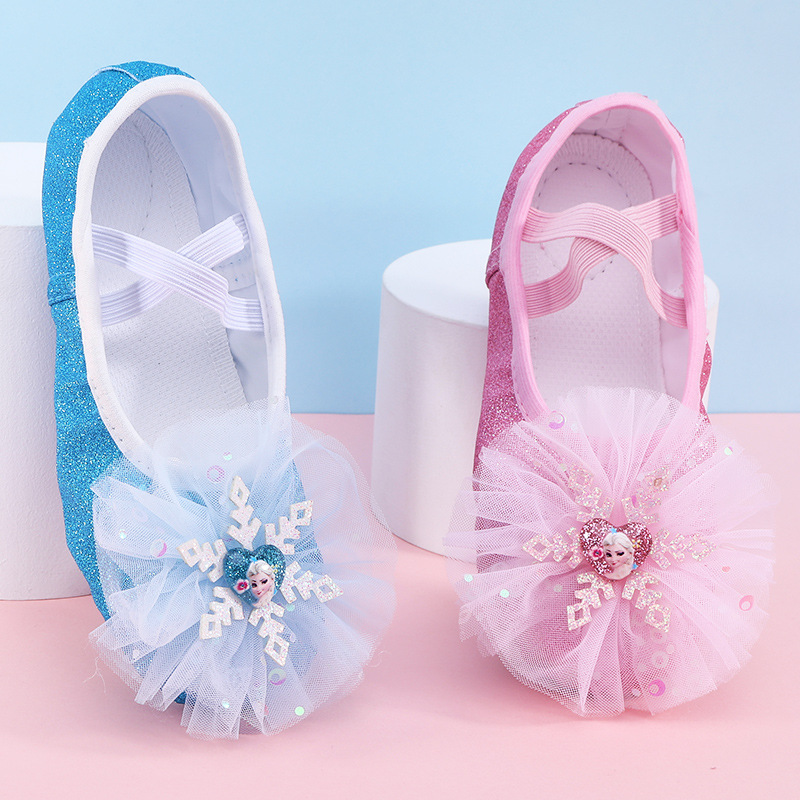 Sepatu dansa putri es berkilau, alas lembut latihan perdagangan luar negeri menari kinerja tubuh sepatu cakar kucing gadis lucu balet