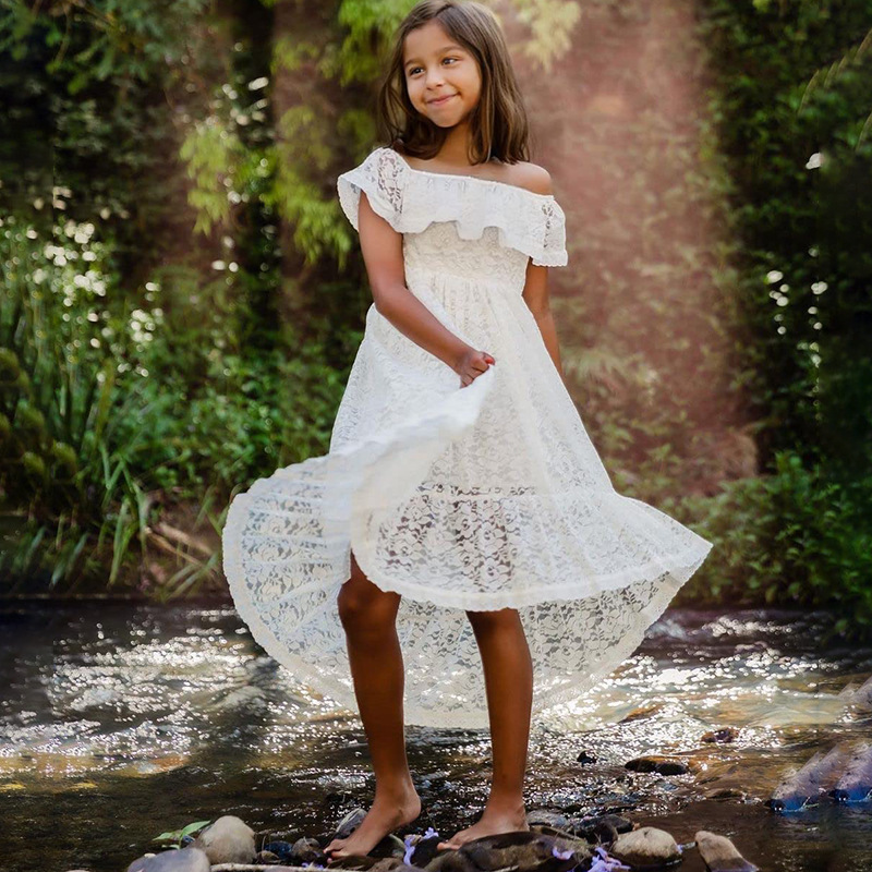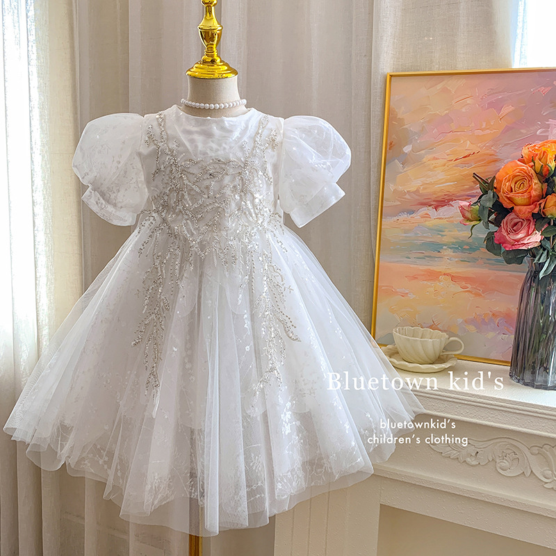 Rok lipit wanita putih musim panas gaun gadis gaun putri anak-anak menengah dan besar kostum host anak-anak manis