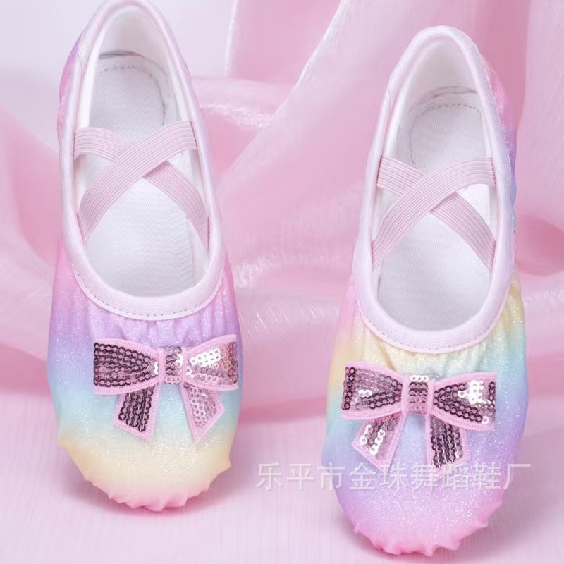 Anak-anak Menari Anak Perempuan Payet Putri Sol Lunak Pelangi Pertunjukan Latihan Menari Tiongkok Sepatu Balet Satin Pita Kupu-Kupu
