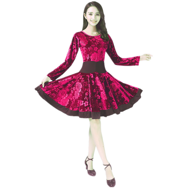 Pakaian dansa persegi, atasan lengan panjang musim gugur dan musim dingin hangat beludru emas pakaian latihan dansa Latin 2020