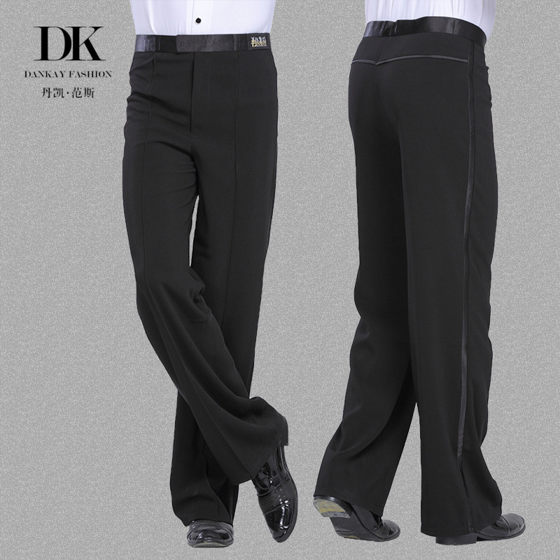 Dankai celana dansa pria, celana tari Latin dewasa lurus modern tebal persegi celana latihan semua hitam
