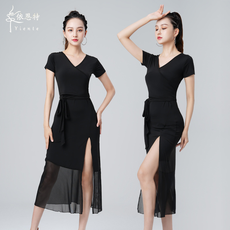 Rok Pendek Balet Terlihat Langsing Tari Latin Wanita Rok Sifon Menutupi Tidak Teraturan Tarian Nasional Tiongkok Tarian Modern Hitam