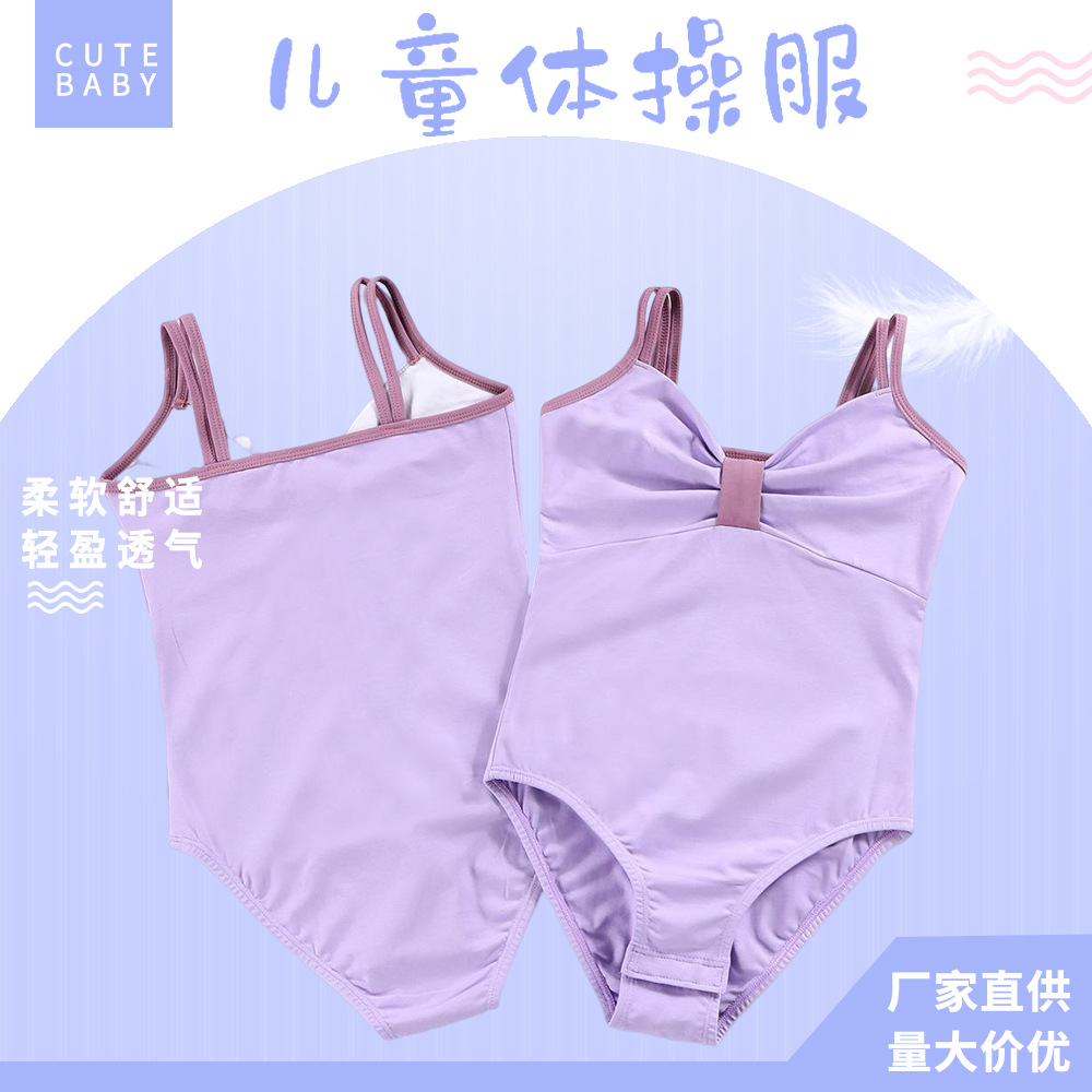 Pakaian dansa anak perempuan, baju katun latihan Latin lengan pendek senam satu potong musim panas