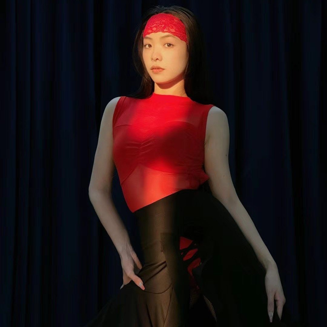 Pakaian dansa anak-anak, baju latihan dansa anak-anak perempuan, musim panas lengan setengah pemeriksaan Latin, pakaian dansa etnik Tiongkok, rok renda