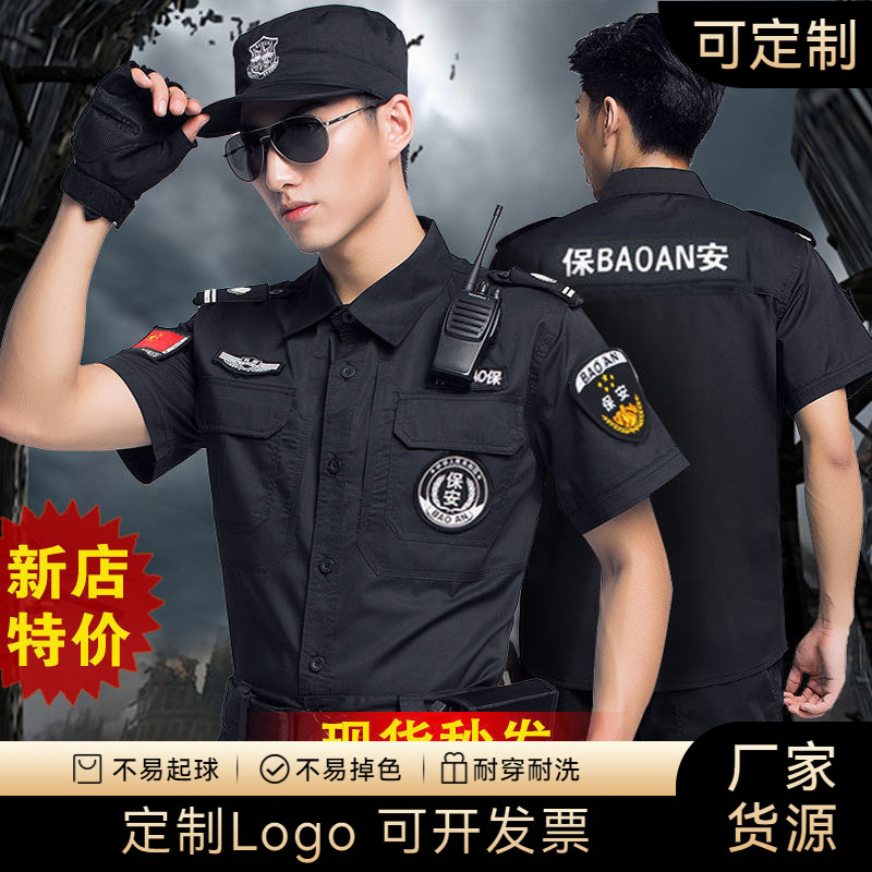 Kaus keamanan lengan pendek pria katun keamanan musim panas pakaian kerja kaus properti Hotel hitam penggemar militer pakaian latihan fisik
