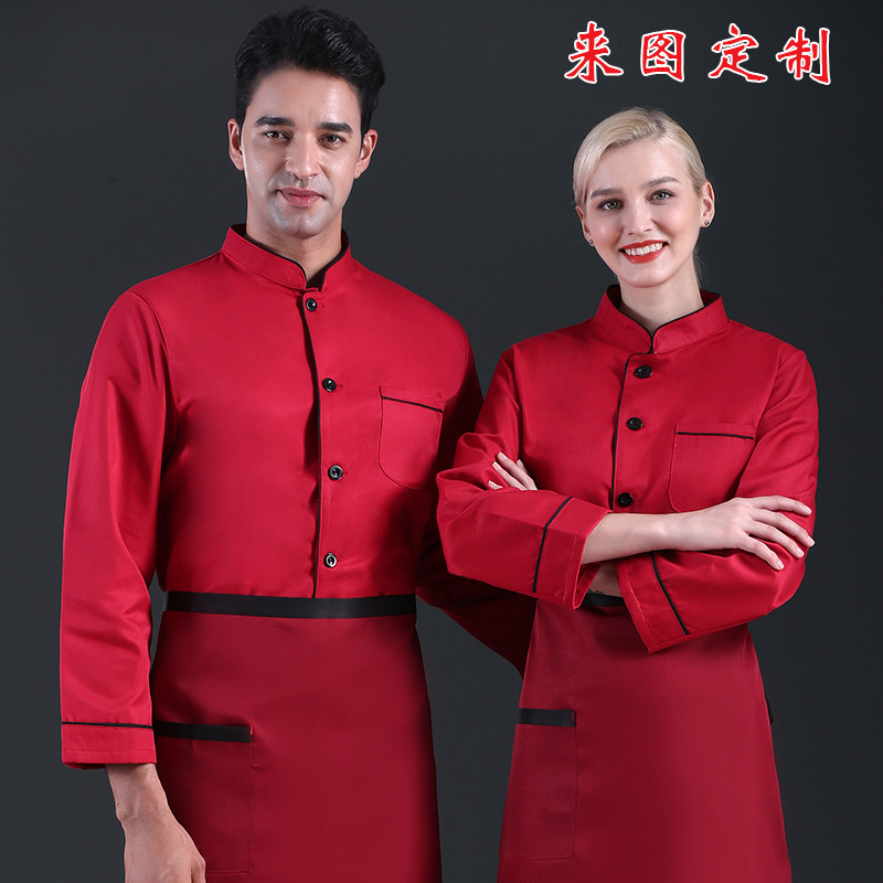 Baju koki dapur Cina lengan panjang, baju koki Barat, Dapur, baju makan hotel, lengan panjang, musim gugur dan musim dingin, anti aus, logo bordir