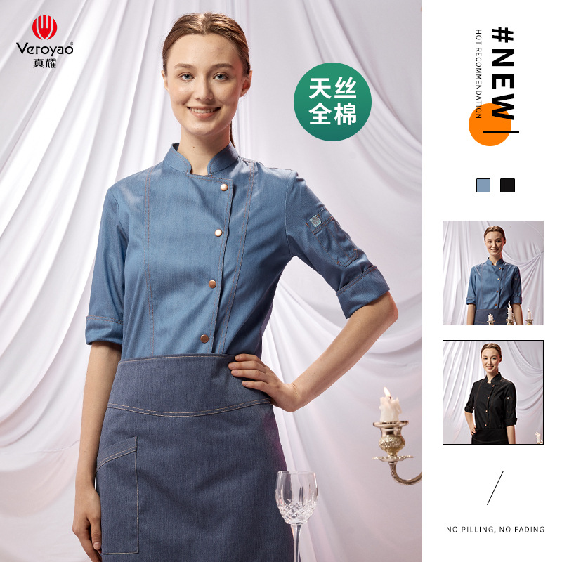Zhenyao baju kerja koki wanita lengan panjang, pakaian kerja koki dapur lengan 3/4 untuk hotel restoran memanggang titik barat