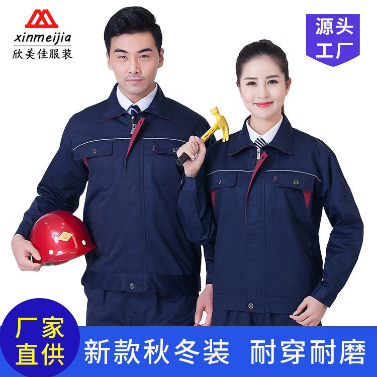 Setelan pakaian kerja katun poliester, setelan pakaian kerja lengan panjang musim dingin, pakaian kerja bengkel, pakaian kerja katun poliester tahan aus, mantel musim gugur