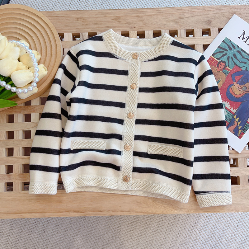 Kardigan rajut anak perempuan, mantel sweater bergaris gaya Barat anak-anak gaya Korea Musim Semi dan Musim Gugur dipertebal