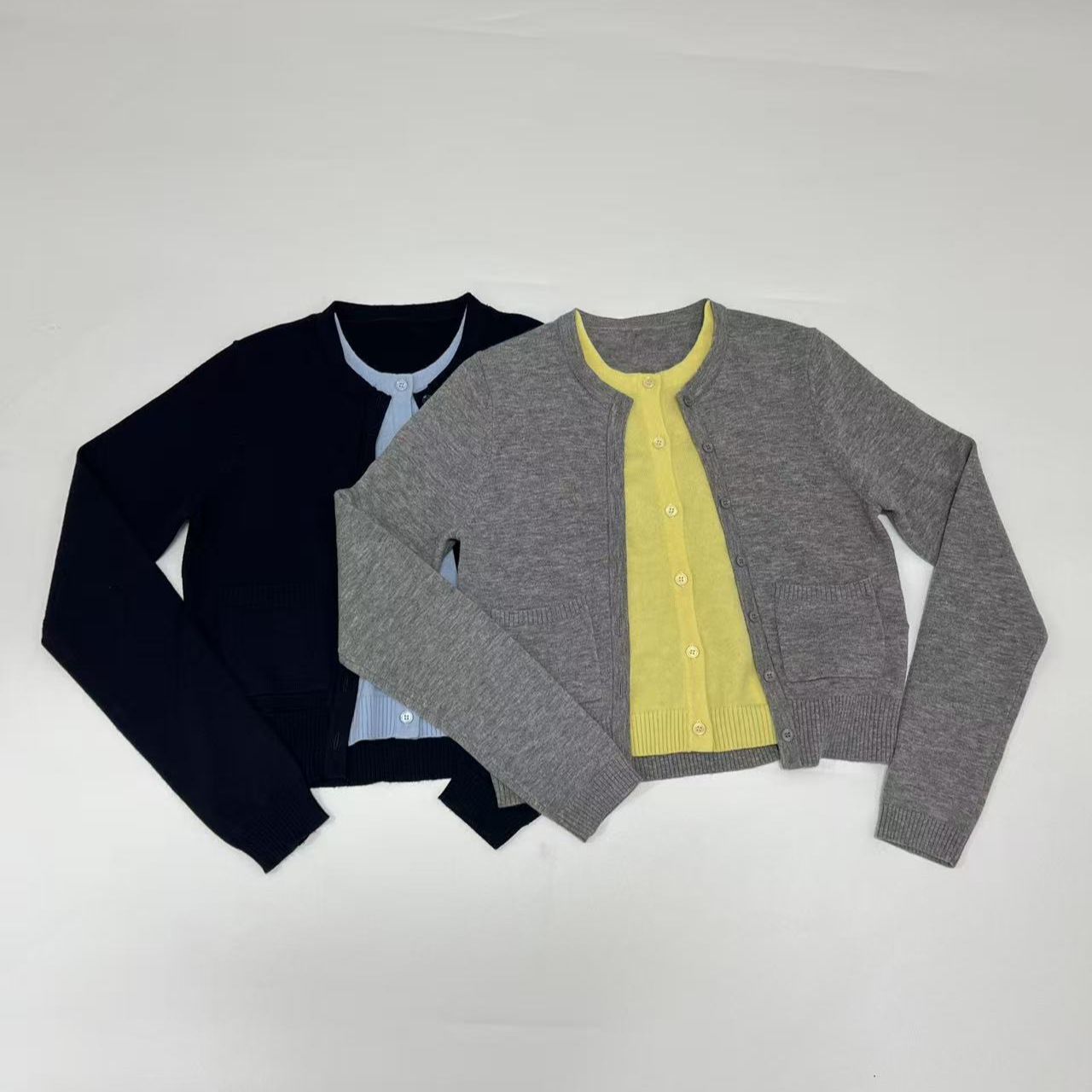 Setelan Sweater Kerah Bulat Gaya Sederhana Gaya MIU Setelan Kardigan Lengan Panjang Dalaman Lengan Pendek Model Tipis Anti Matahari AC