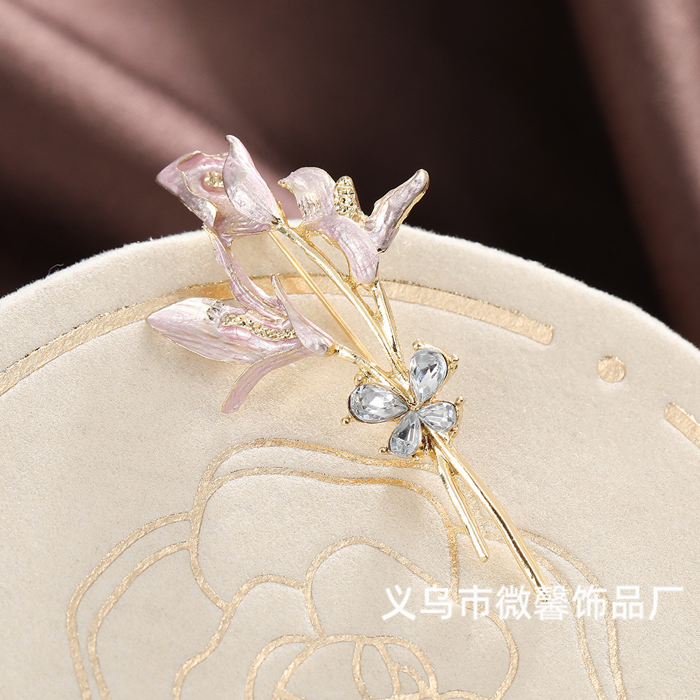 新款高档精致仿真百合花胸针甜美优雅西装衣服配饰旗袍防走光别针