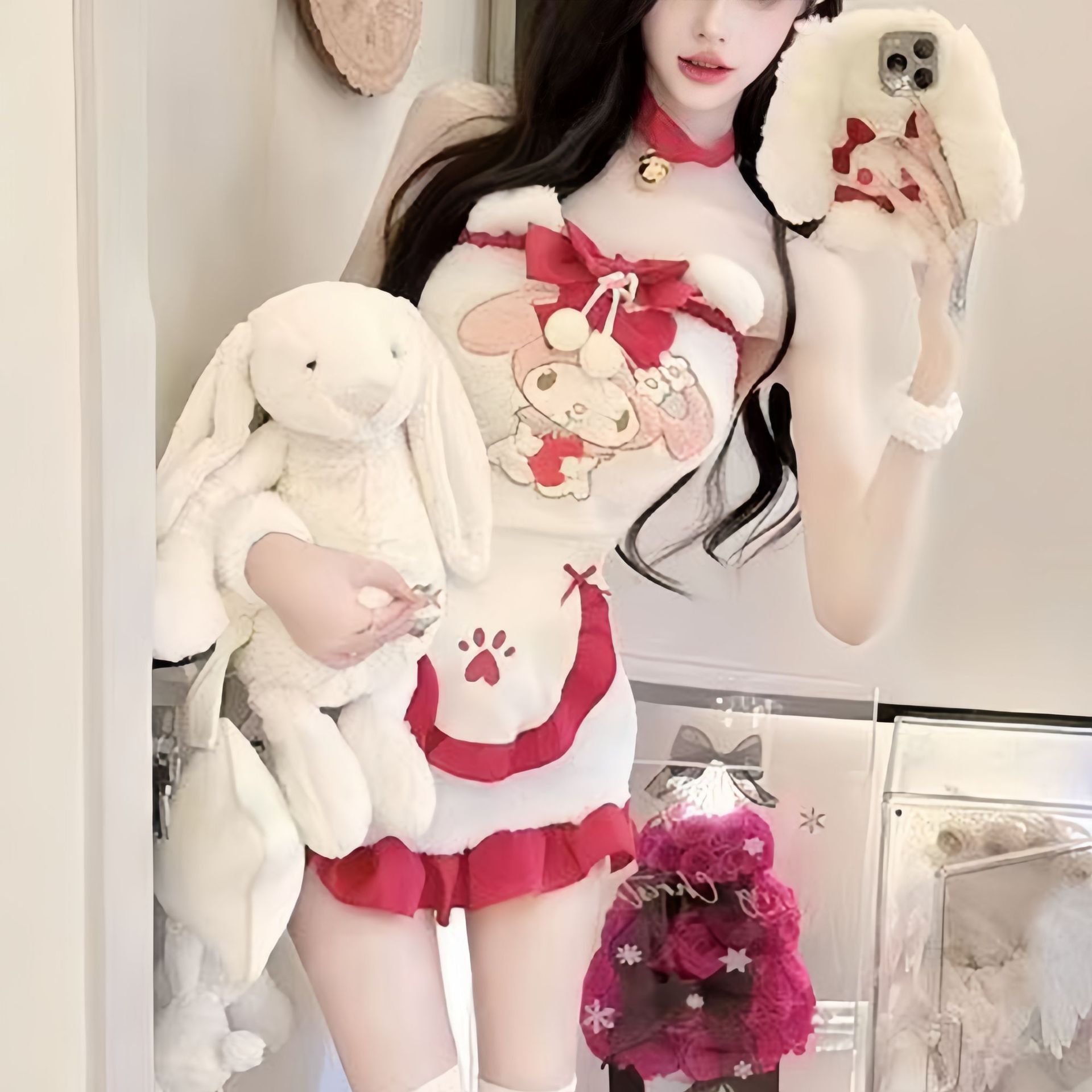 性感女主播表演服女仆装kt奶猫小熊连衣裙格子花边睡裙私房包臀裙