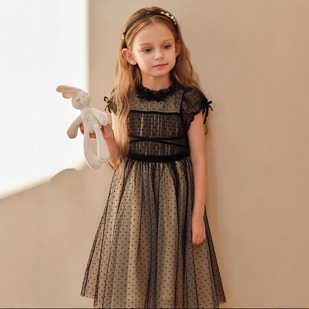 Gaun Anak Rok Putri Elegan Gaya Hepburn Warna Hitam Pakaian Pertunjukan Piano Biola Panggung Gaun Tuan Rumah Musim Panas