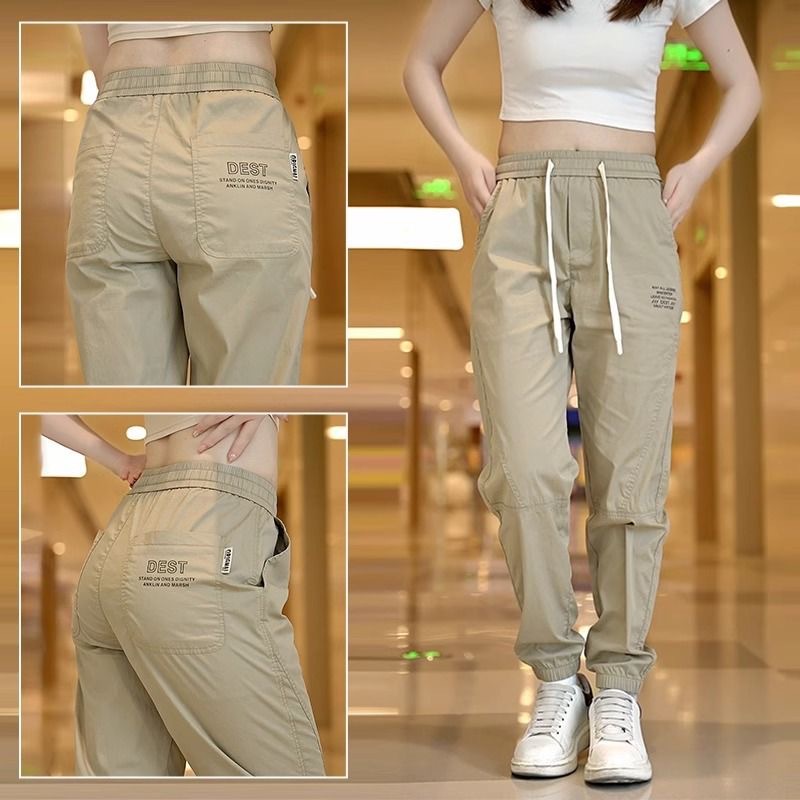 Celana Skors Olahraga Elastis Terlihat Langsing Mudah Dipadu Padan Jogging Kasual Pakaian Luar Model Tipis Musim Panas Wanita Celana Kerja Sutra Es