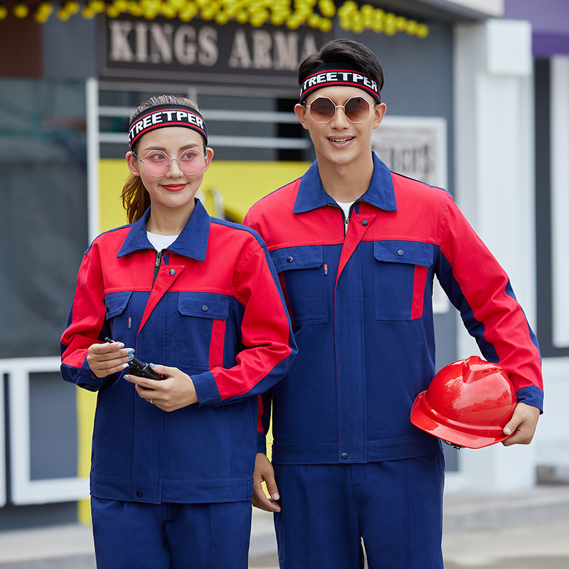 Setelan pakaian kerja pria lengan panjang, pakaian kerja strip reflektif, pakaian pabrik, anti aus, pakaian kerja perbaikan otomatis, musim semi dan musim gugur