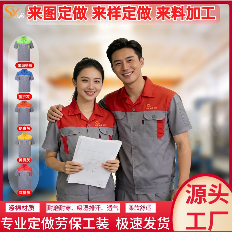 Setelan Pakaian Kerja Lengan Pendek Musim Panas Setelan Pakaian Kerja Kustom Tembus Udara dan Tahan aus