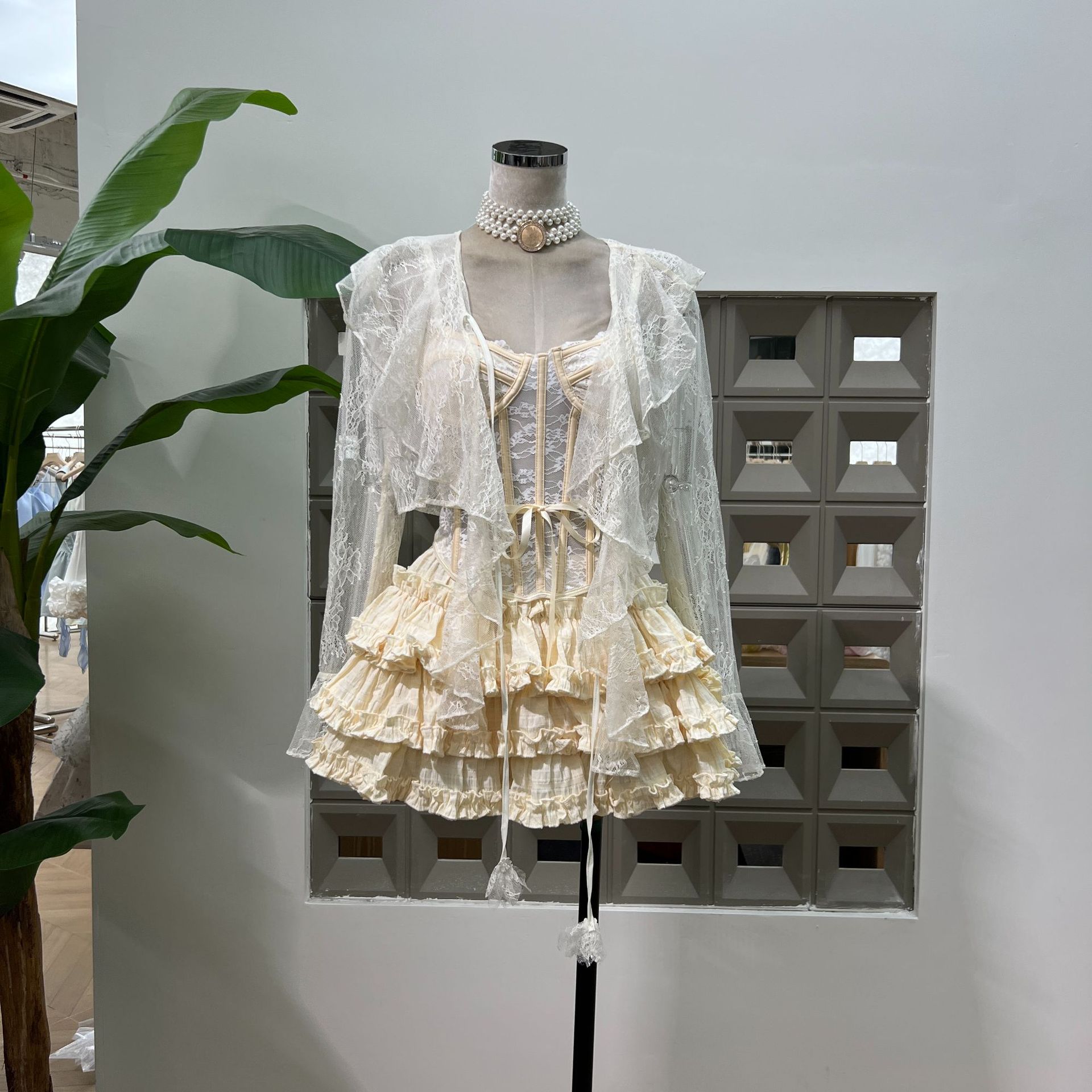 Amazon 2025 Musim Panas Renda Tulang Ikan Tali Kamisol Elastis Rompi Kue Lipit Rok Setengah Rok Renda Kardigan Pelindung Terik Matahari