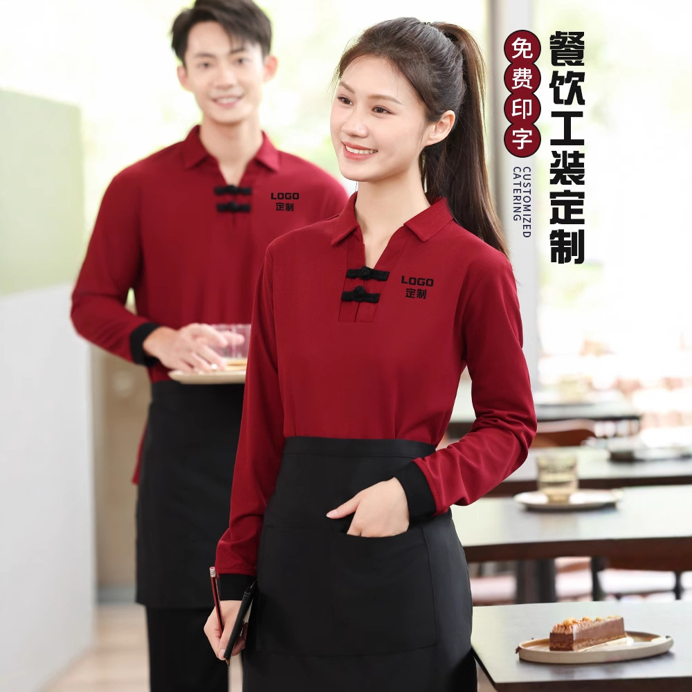 Pakaian Kerja Katering Kaus Lengan Pendek Hotel Hot Pot Barbekyu Teh Susu Toko Supermarket Seragam Pelayan Kemeja Polo Cetak Karakter