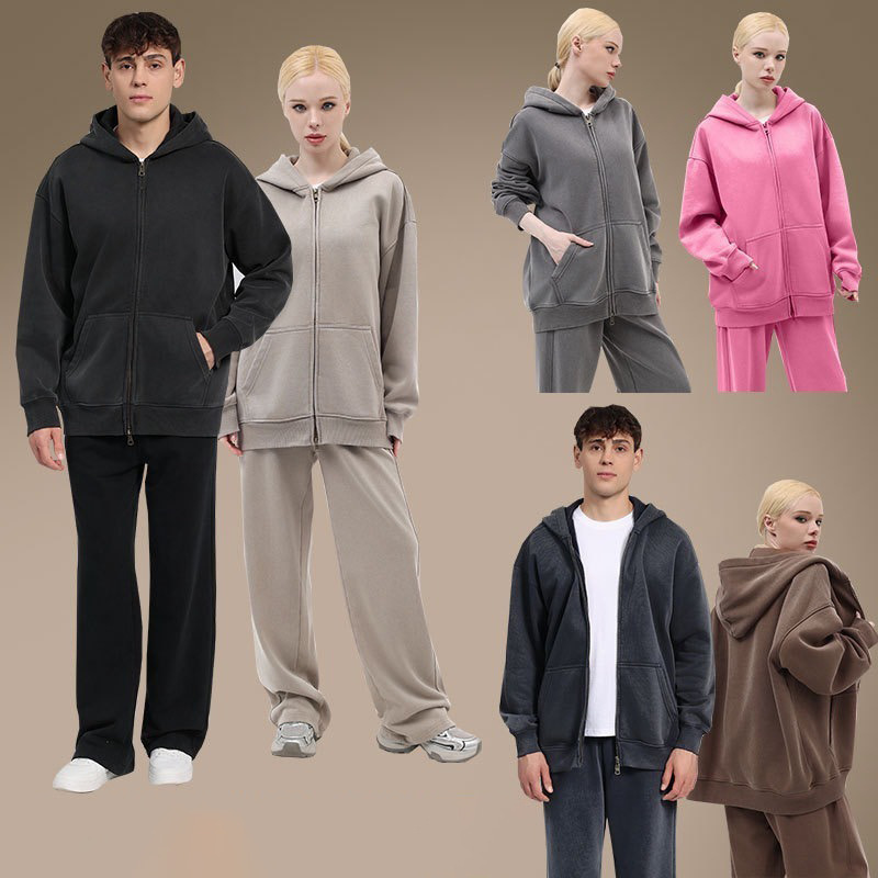 380G重磅美式炸街拉链开衫卫衣宽松蜡染洗水做旧薄绒连帽外套男女