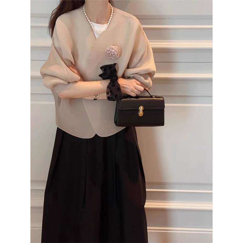 三宅2025年春季新款外套时尚气质百搭高级感短款显瘦褶皱开衫上衣