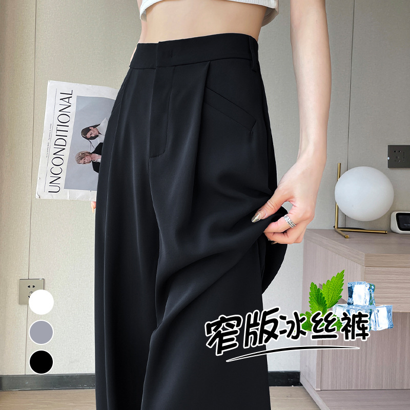 Celana Sedan Sutra Es Musim Panas Model Korea Batas Musim Panas 2025 Celana Lebar Kaki Model Pinggang Tinggi Model Sempit Lurus Celana Melepuh Kasual Model Tipis Wanita