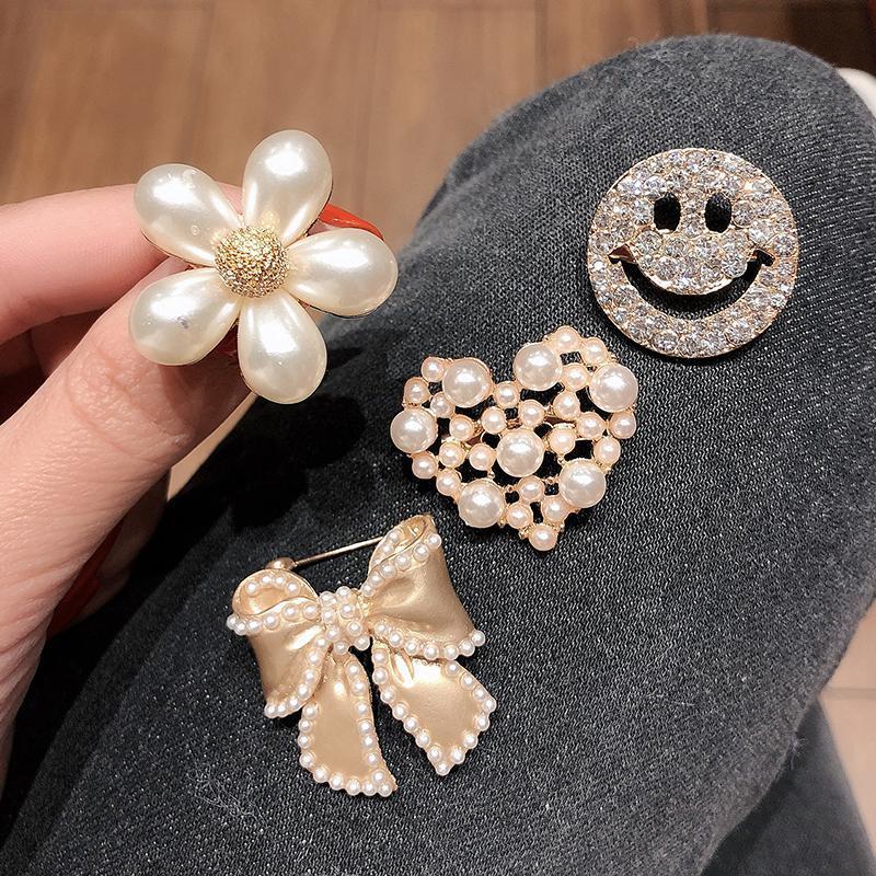 Bros bunga mutiara kecil lucu Anti eksposur pin pin lucu pin dekorasi garis leher