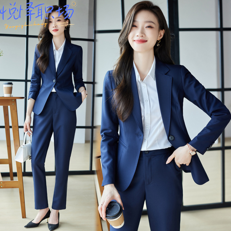 Setelan pakaian bisnis wanita, setelan hitam Musim Semi dan Musim Gugur 2023, pakaian formal wawancara, baju overall temperamen, jaket musim gugur