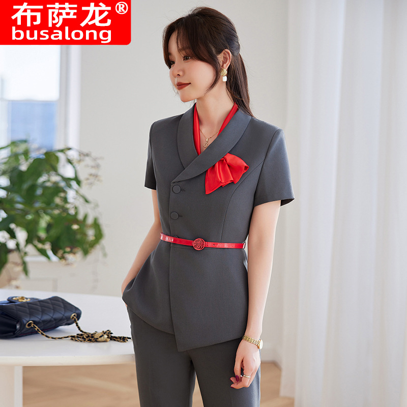 Setelan profesional lengan pendek wanita busaron baru 2023 celana potong setelan formal pakaian kerja penjualan wawancara 2268