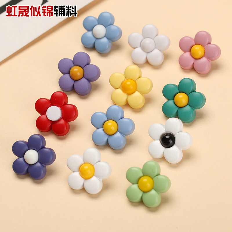 Kancing Bunga Kecil Kartun Warna-warni Pakaian Anak Bayi Rajutan Kardigan Sweter Plastik Kancing Jahitan Tangan